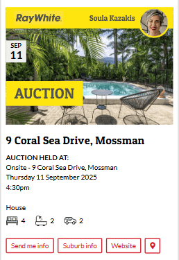 ![]() Amber Farnan @ Ellis Beach Bar & GrillDate: Saturday 16 August 2025 Time: 5:30pm - 8:30pm Location: Ellis Beach Bar & Grill ![]() | ![]() YahdohDate: Saturday 16 August 2025 Time: 5:00pm - 8:00pm Location: Club Mossman ![]() |