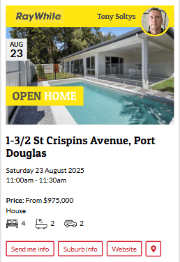 ![]() Food Gardening at CIRCLE OF PLENTYDate: Saturday 23 August 2025 Time: 8am - 9am Location: Circle of Plenty, Mossman Botanic Garden, Mossman ![]() | ![]() Drewboy @ Ellis Beach Bar & GrillDate: Saturday 23 August 2025 Time: 5:30pm - 8:30pm Location: Ellis Beach Bar & Grill ![]() |