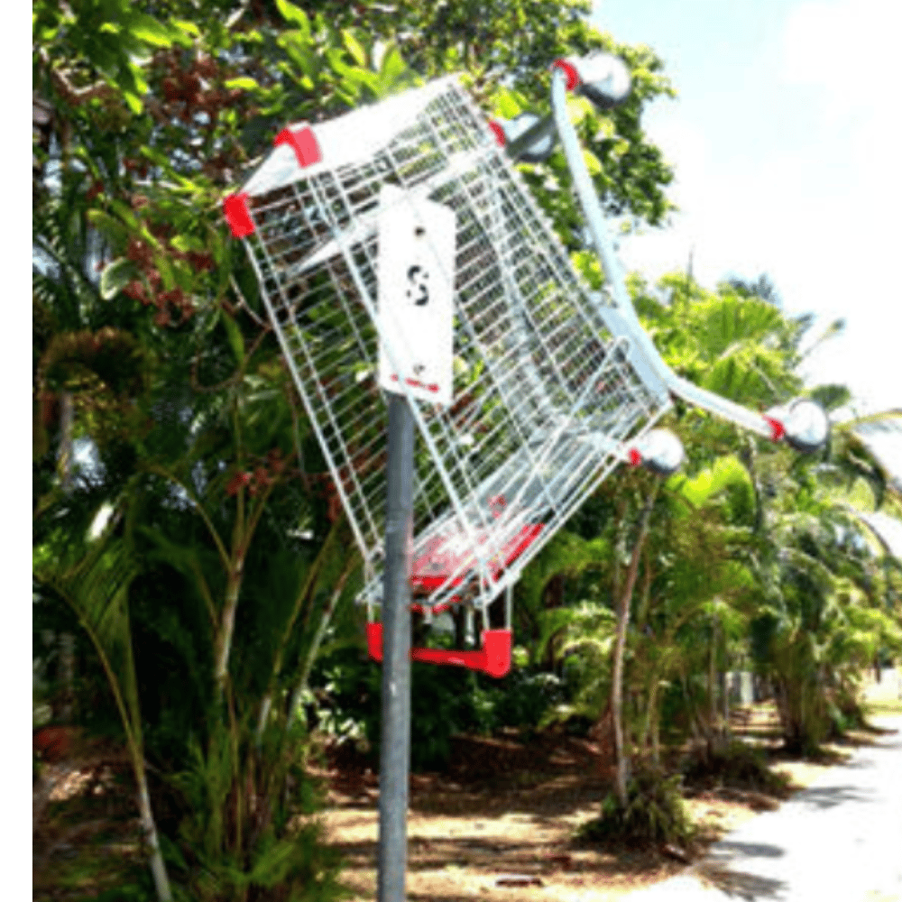 Vandals leave shopping trolleys on poles