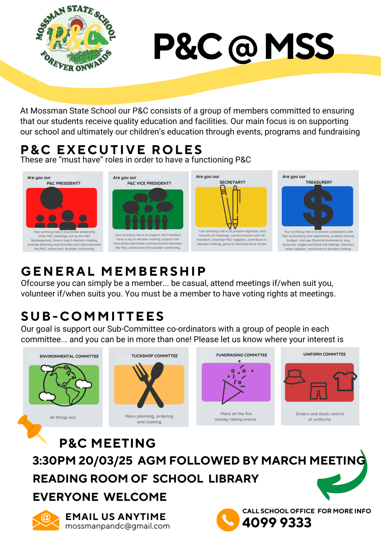 Notice of Annual General Meeting All members are advised that an annual general meeting of the members of Mossman State School Parents and Citizens’ Association will take place as follows: