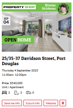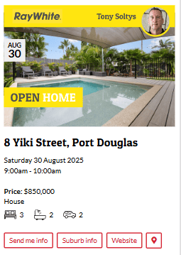 ![]() Cam Kettle @ Ellis Beach Bar & GrillDate: Friday 29 August 2025 Time: 5:30pm - 8:30pm Location: Ellis Beach Bar & Grill ![]() | ![]() Rockin' Rick KaraokeDate: Friday 29 August 2025 Time: 7:30pm - 10:30pm Location: Club Mossman ![]() |