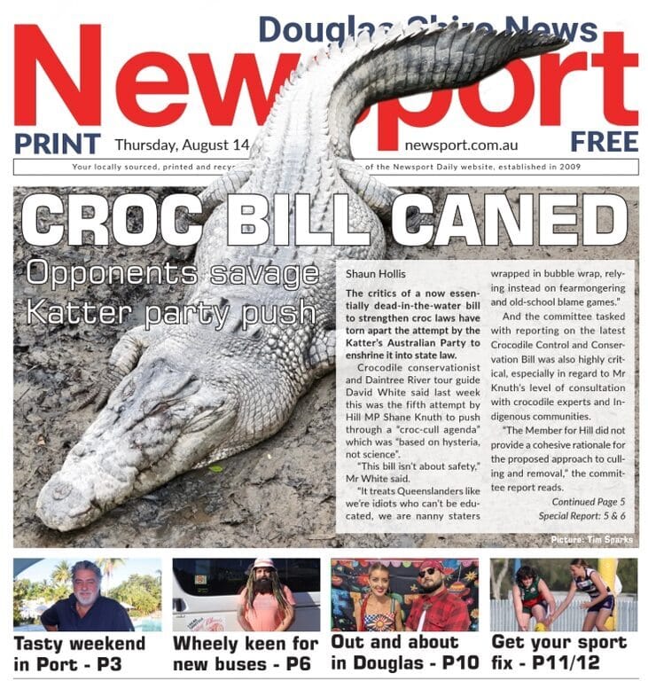 This week’s FREE Newsport Daily Print Edition takes a big bite into the debate raging about the Crocodile Control and Conservation Bill which is looking to be dead-in-the-water.