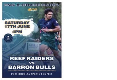 REEF RAIDERS VS BARRON TRINITY BULLSJune 17thThis Saturday 4pm at Port Douglas Sports Complex