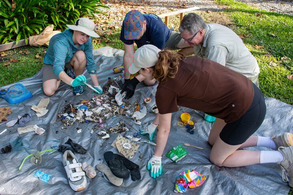 While soaking up the sun on our stunning Four Mile Beach, you might not notice it at first, but take a closer look along the vegetation line, and you’ll start to spot plastic bottle caps, the odd washed-up thong, and all sorts of strange items.