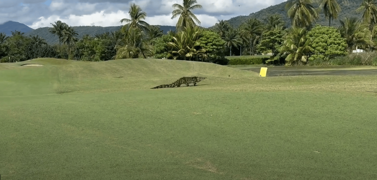 WATCH THE VIDEO: Three-metre croc casually sauntering across Port Douglas golf course