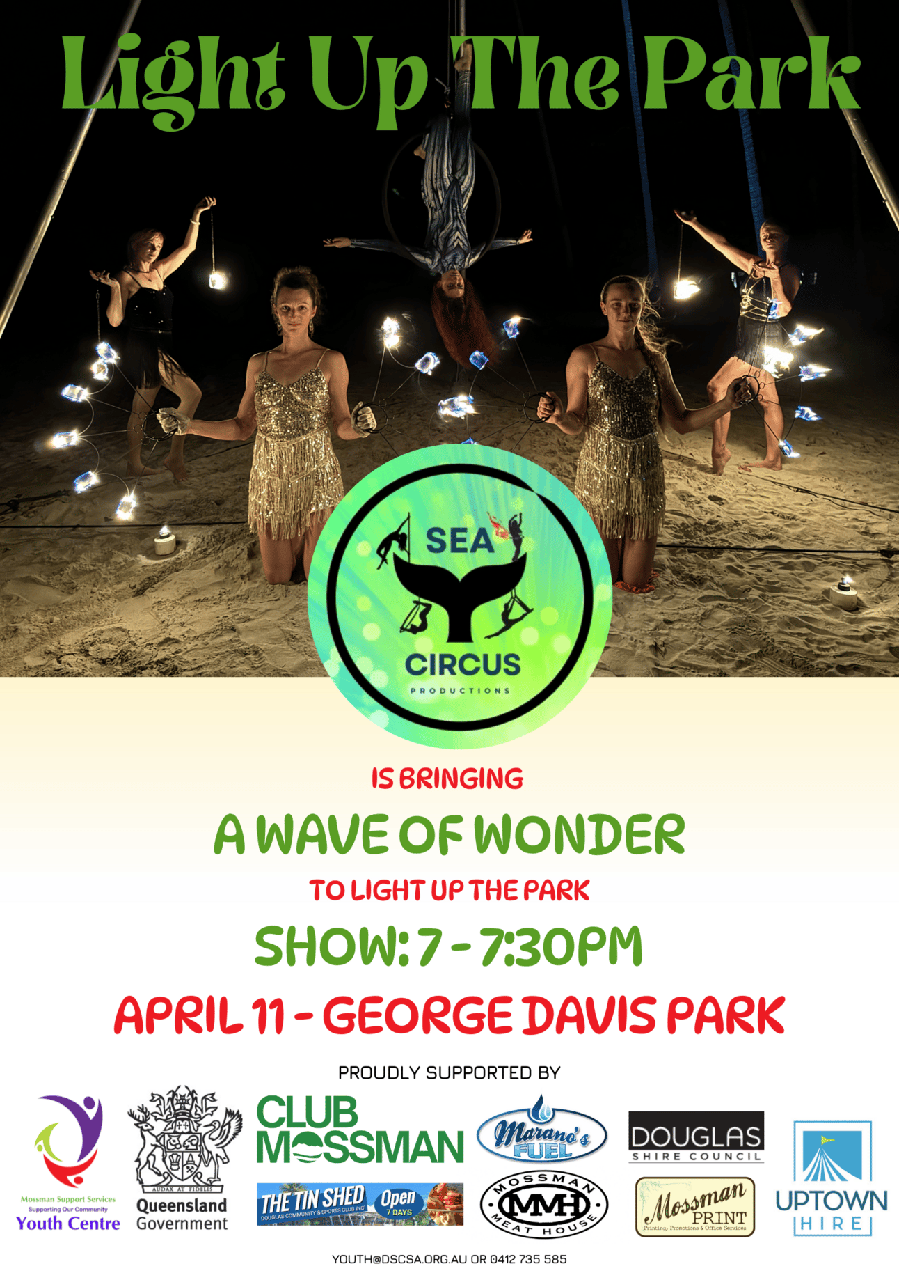 Sea Circus is bringing 'A Wave of Wonder' to our next Light Up The Park event with a special live performance from 7:00 PM – 7:30 PM—a fantastic way to end the day! We’d love for you to come along to the event, and as always, we’re inviting local organisations, services, and businesses to get involved. It’s a great chance to connect with young people and the community, and to share what you do.