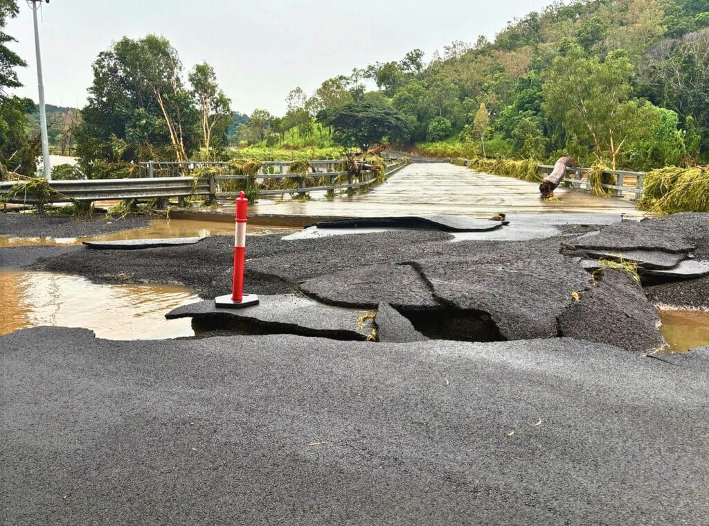 The damaged state of a Wujal Wujal road after floodwaters had cleared has shone a spotlight on the importance of being extra careful when driving on flooded thoroughfares in Far North Queensland.