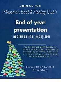 END OF YEAR PRESENTATIONDecember 9thIt's this time of year again...Join us for Mossman Boat & Fishing Club's End of year presentationDecember 9th, 2023 5PM