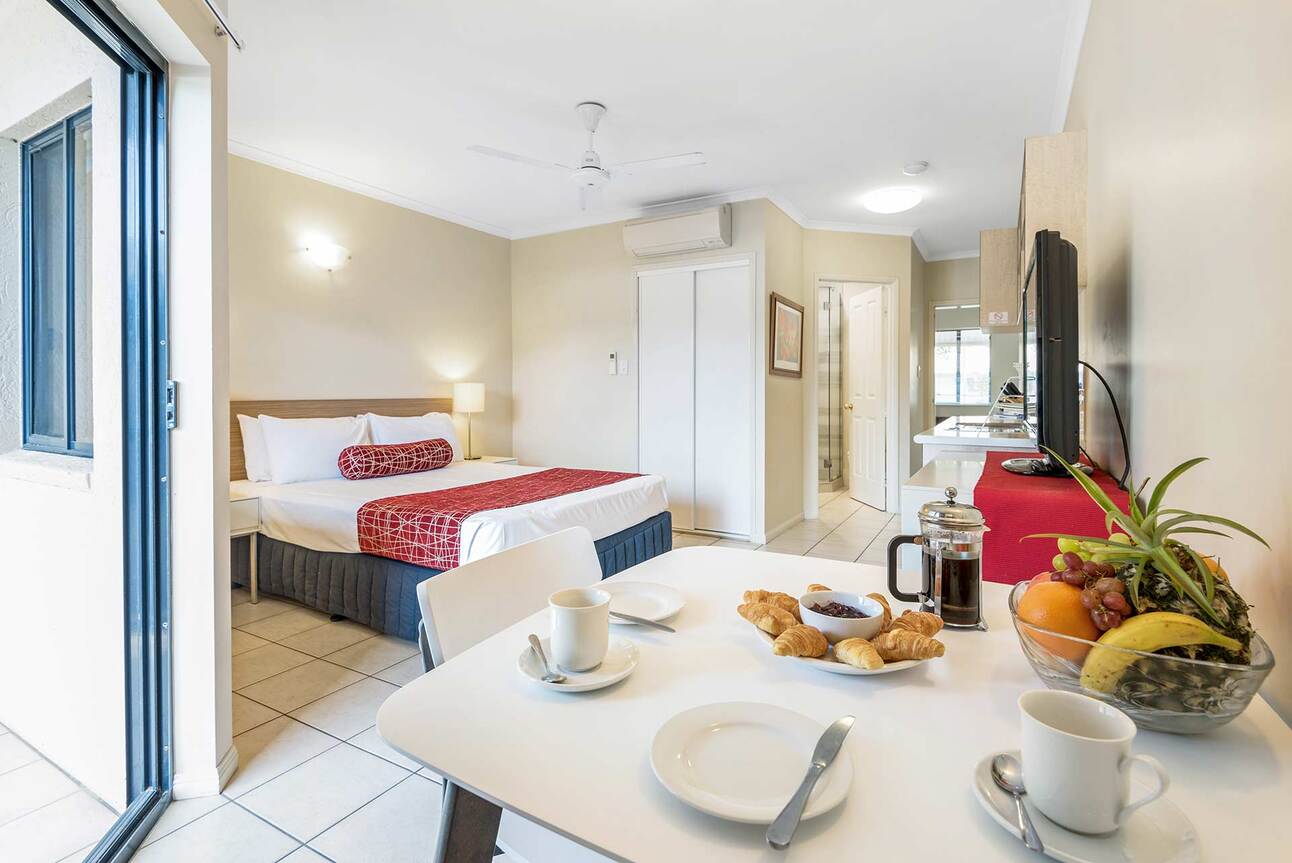 Cayman Villas Port Douglas offers luxurious and elegant accommodation next to Four Mile Beach, with easy access to Port Douglas' amenities. The fully contained apartments feature spacious living areas, comfortable beds, tropical balconies, and spa baths in the master bedroom.
