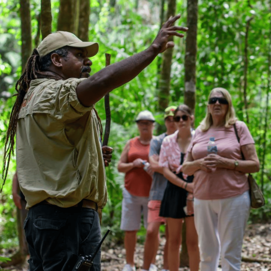 Enjoy a walk meandering through stunning rainforest and passes by traditional huts while your guide provides an enchanting narrative of the rainforest, their special relationship and connection with this unique tropical environment and demonstrate traditions like making bush soaps and ochre paint.